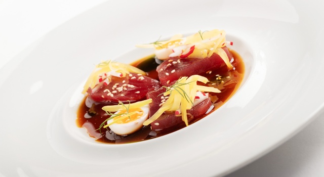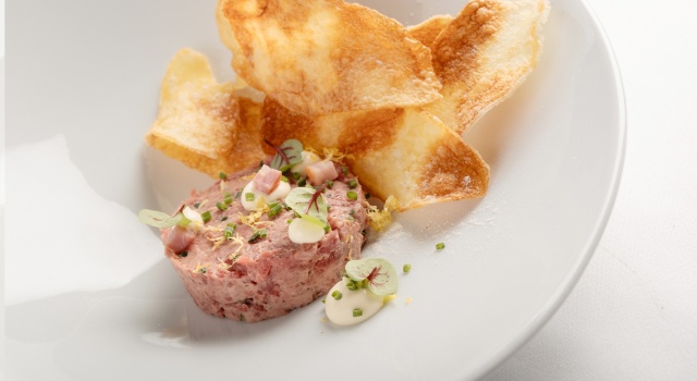 Telecí vitello tonato, kapary, tuňákový dip, rukola 220,-