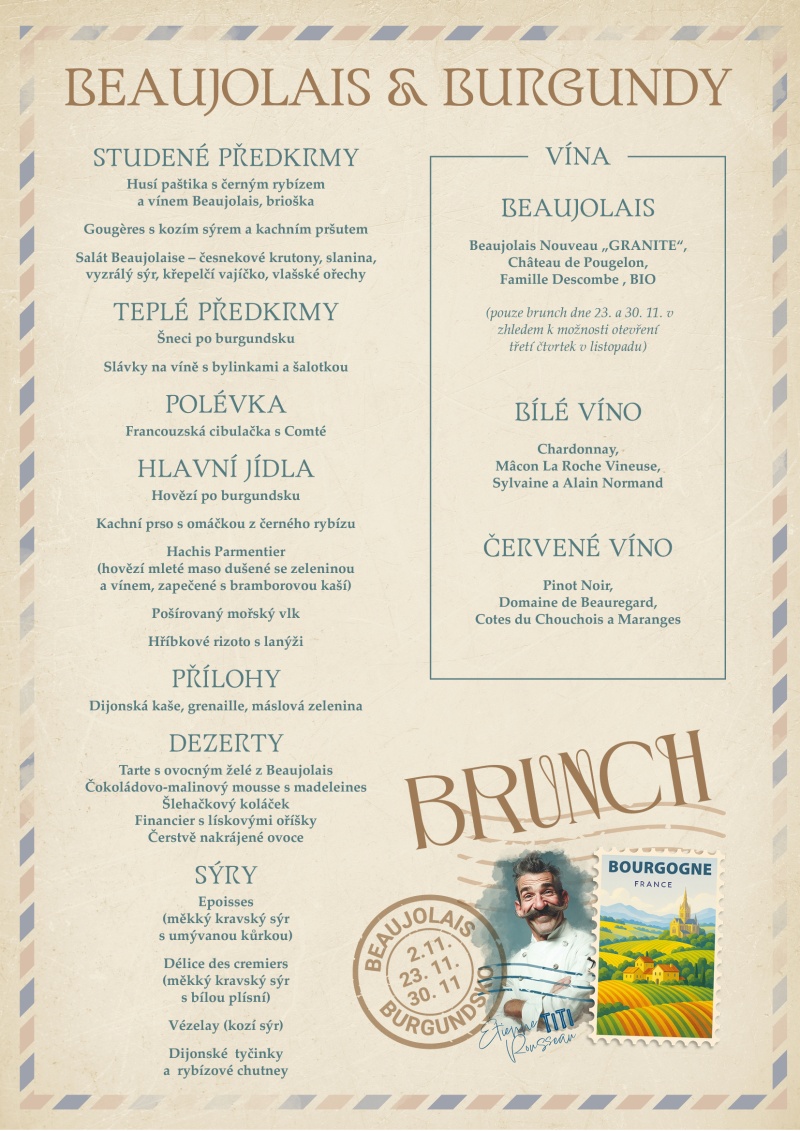 2. 11., 23.11., 30.11. Francouzský brunch - BEAUJOLAIS & BURGUNDSKO